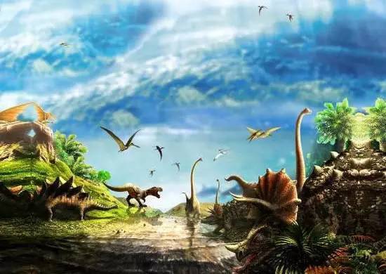 中生代,两亿五秦祁昆仑画条弧南方为海北为陆侏罗纪,爬着行地上霸主是恐龙白垩纪,环境恶恐龙菊石全绝灭
