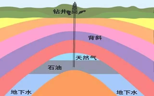 此外,煤、石油等是由千万年的地质演化形成的,与岩层的新老关系密切。有些含有油气的沉积岩层,由于受到巨大压力而发生变形,石油都跑到背斜里去了,形成富集区。所以背斜构造往往是储藏石油的“仓库”,在石油地质学上叫“储油构造”。通常,由于天然气密度最小,处在背斜构造的顶部,石油处在中间,下部则是水。寻找油气资源就是要先找这种地方。